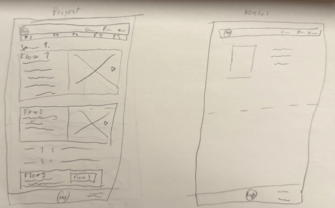 Jeg startede med at lave skitser til hjemmesiden på vej hjem fra skole den dag, vi fik opgaven. Dem lavede jeg i min notesbog, som I også kan se billeder af her. Jeg tænkte hurtigt, at jeg gerne ville have en meget simpel og overskuelig hjemmeside, men samtidig skulle den også have et stilrent design. Jeg satte mit logo op i venstre hjørne i headeren, da de fleste kigger fra venstre mod højre, og det derfor ville være noget af det første, de ser. Jeg havde også lagt mit logo midt i min footer, men har senere ændret det, så den blev mere sammenlignelig med headeren